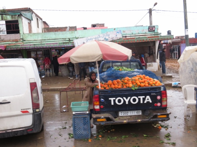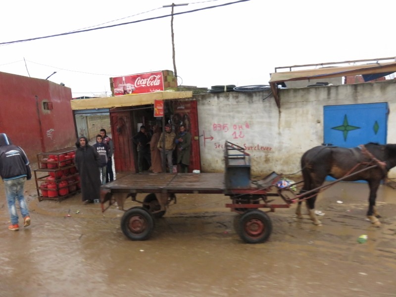 Toujours avec les cartes russes que l’on a largement adoptées pour découvrir le Maroc hors des sentiers battus, route ou plutôt ce qu’il en reste vers Moulay Bousselham, village de pécheurs aux nombreuses fresques. Pause repas puis marché local de poissons essentiellement. On repart avec 2 belles soles pour 40 dirhams (4 €).