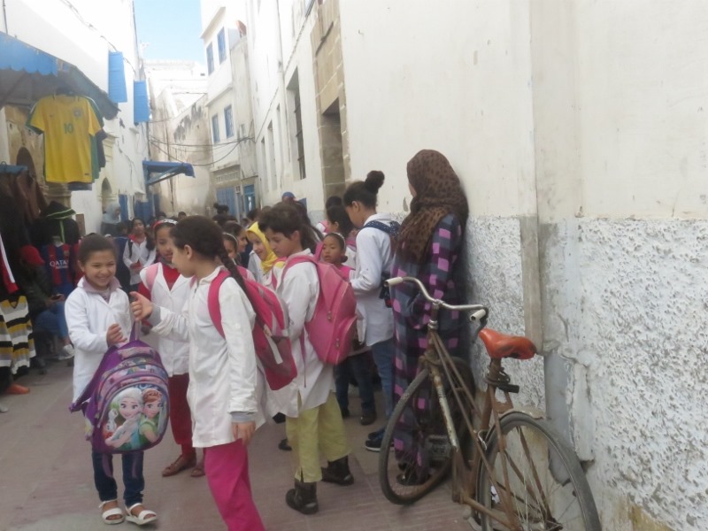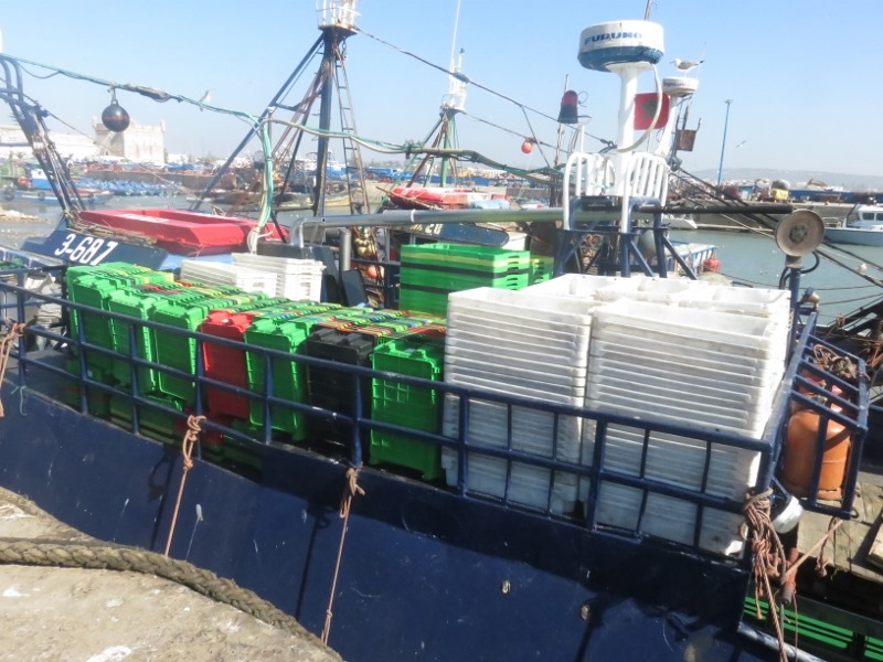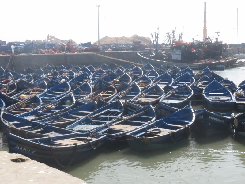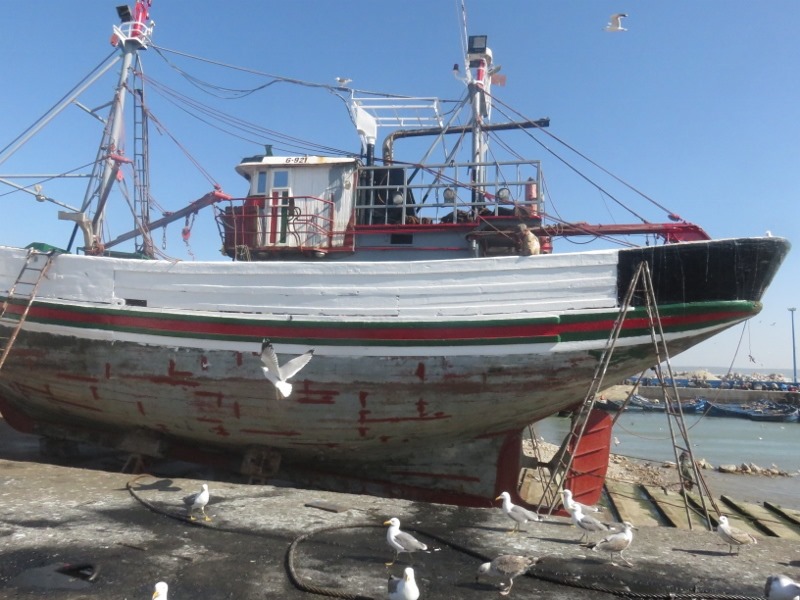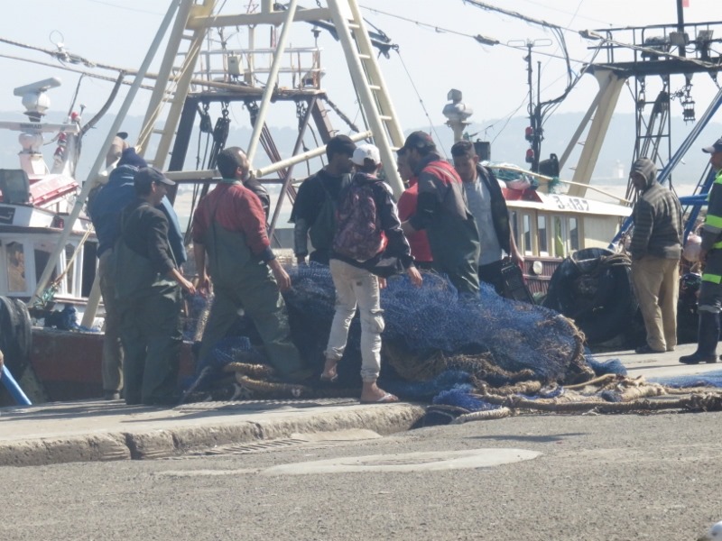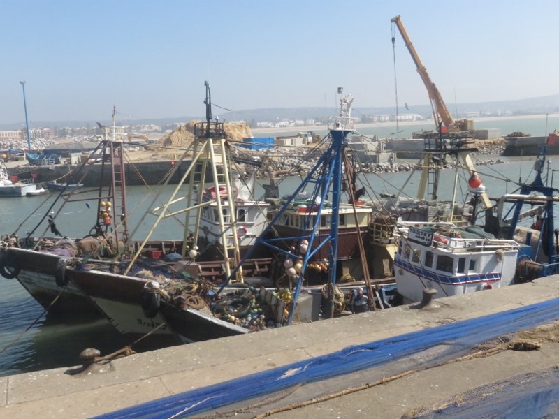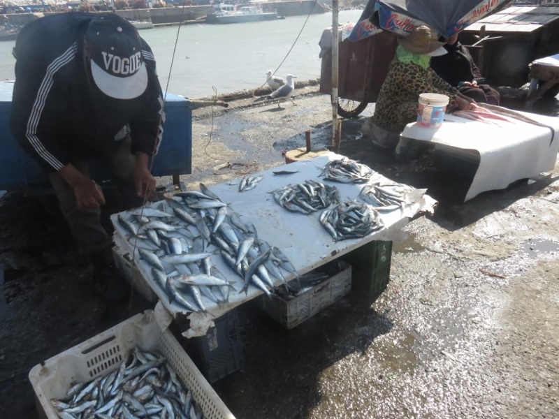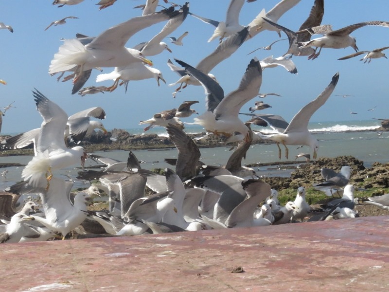 On prend le temps d’observer ce petit monde, ce grouillement incessant, le ballet des bateaux, les allers-venues des marocain(e)s faisant leur courses, les pécheurs préparant les poissons, sans oublier les grasses mouettes à l’affut du moindre bout de poisson.
