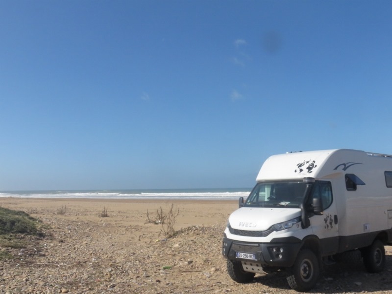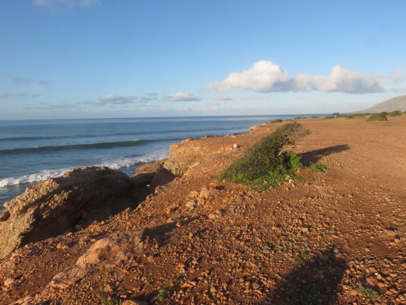 Dans ce coin, les camping-cars ne sont pas forcement les bienvenus hors camping. Pour nous, ce sera hors camping, au niveau d’AGHOUD, sur une falaise juste au dessus de la mer, un départ pour les surfeurs camping-caristes.