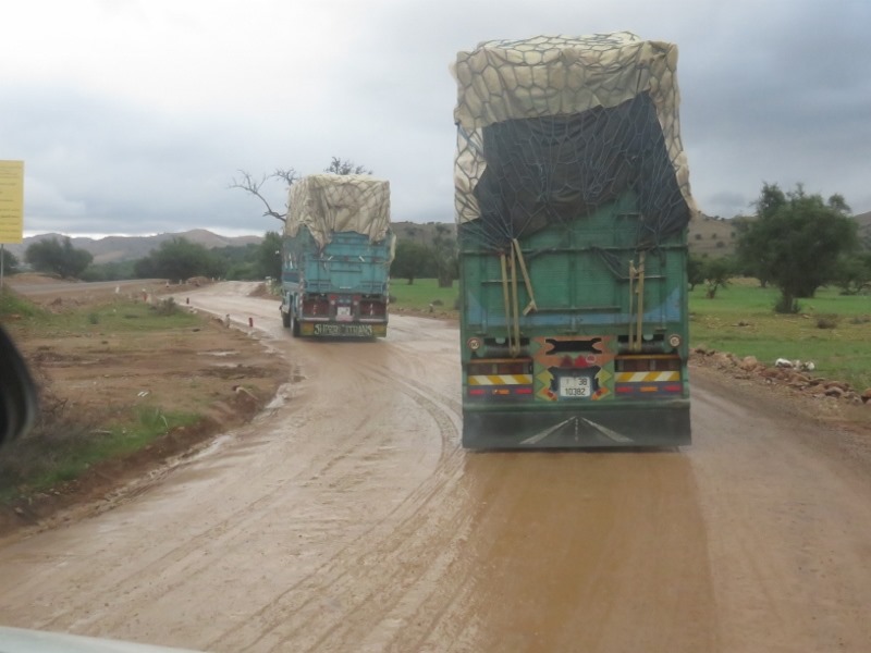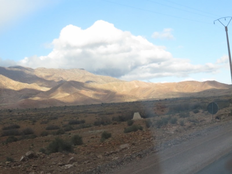 Aujourd’hui, ce sera route d’Agadir à Taliouine. On quitte la cote, l’océan pour entrer dans les terres, dans l’Anti Atlas. Bien sur, de plus en plus sec. D’immenses cultures, de champs d’agrumes (les clémentiniers) bordés par des oliviers ou d’arganiers (production notamment d’huile au gout d’amande grillée). D’ailleurs, on se régale avec leurs oranges et leurs clémentines.