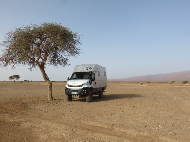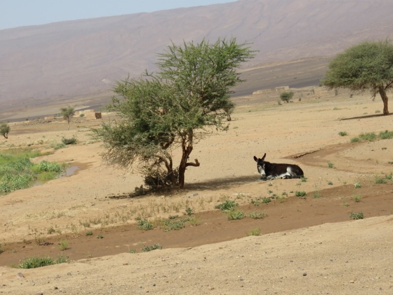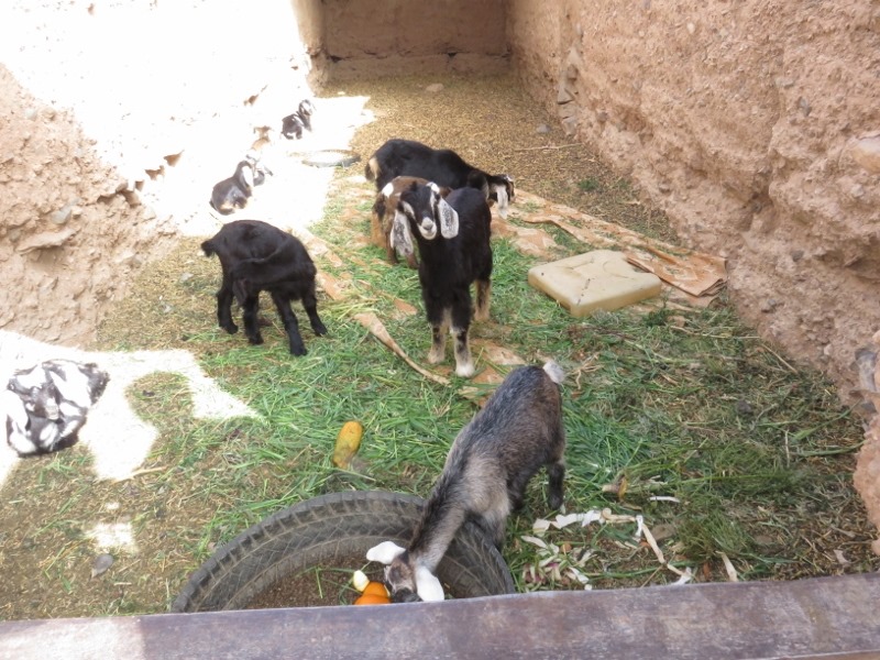 Réveil dans le village de Zaouiat Sidi Abdenbi avec les clochettes des chèvres. Les villageois viennent faire un tour près du camping-car avec leurs troupeaux de chèvres.