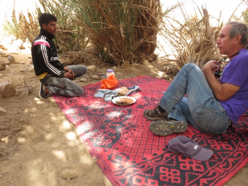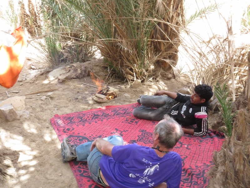 Pour le petit dej’, Khadija (la femme d’Atmane) nous prépare des crêpes que l’on savoure avec du beurre de chamelle et bien sur du thé.