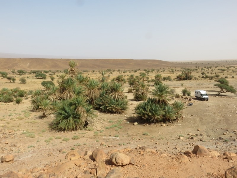 Ballade dans la palmeraie : 2 puits, l’ancienne casbah surplombant une belle plaine du désert.