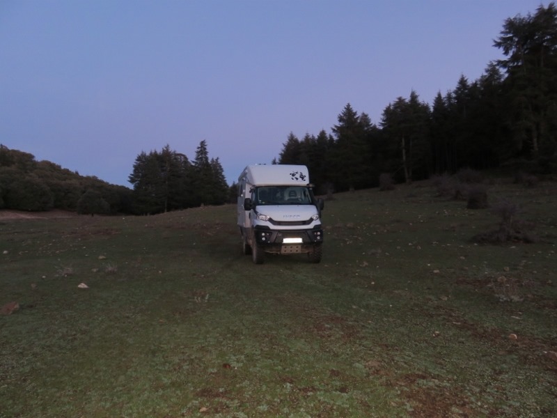 En fin de journée, arrivée dans le Parc National d’Ifrane avec ses grandes forêts de cèdres, son magnifique cèdre gouraud vieux de 750 ans (il est mort maintenant), mais aussi ses singes sauvages.