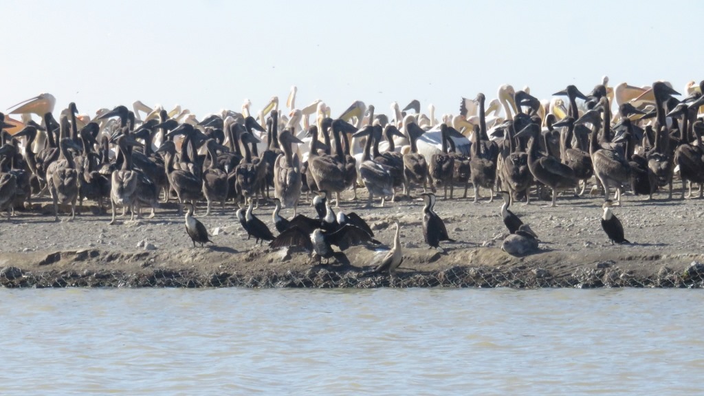 L’ile de reproduction des pélicans : Les bébés pélicans sont noirs à la naissance, blancs à l’âge adulte. Ils appellent quand ils ont faim. Et la mère reconnait son ou ses petits à son cri. Ils sont des milliers sur l’ile.