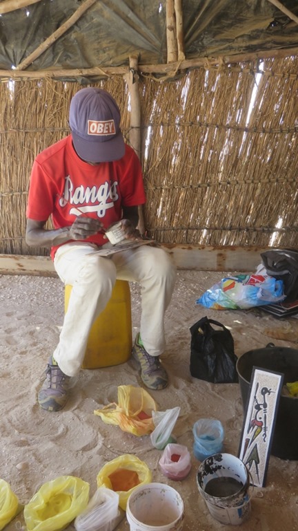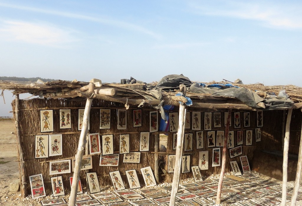 Cheik est un artiste qui fait des peintures de sable. Il nous montrera son atelier et nous emmènera faire une balade en pirogue tout en nous expliquant l’histoire du lac, le travail du sel, les conséquences du réchauffement climatique là aussi.