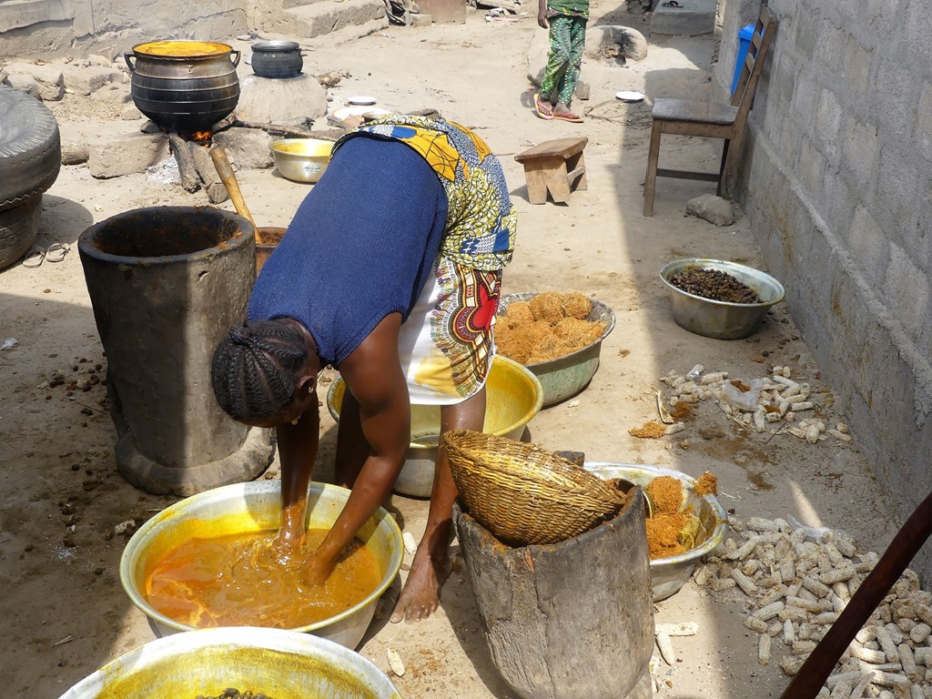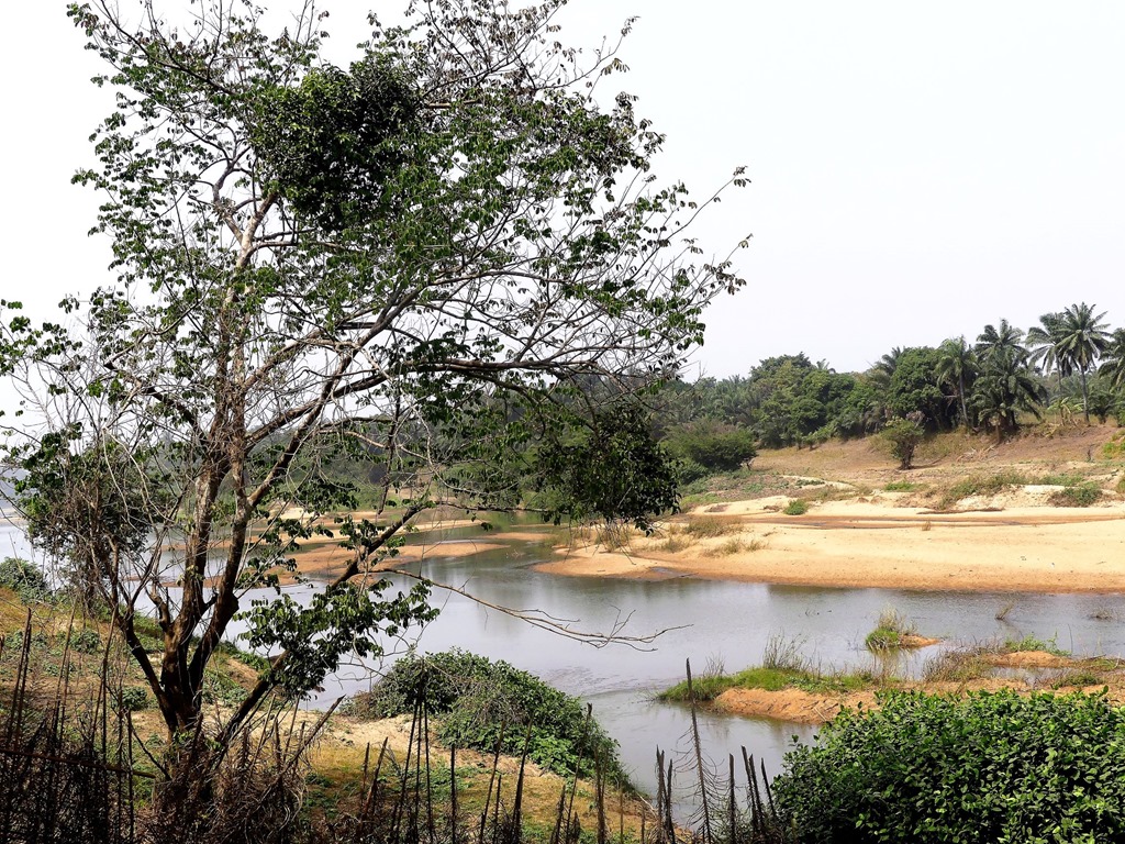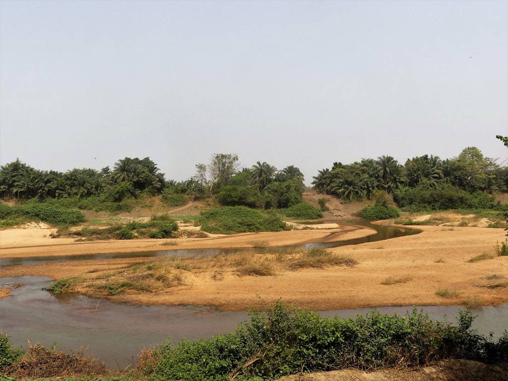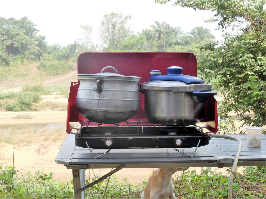 Dans un hameau, au bord de l’Ouémé, le plus grand fleuve du Bénin, on s’arrête pour une pause déjeuner, on y restera une petite semaine.