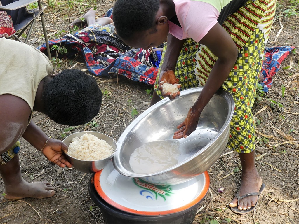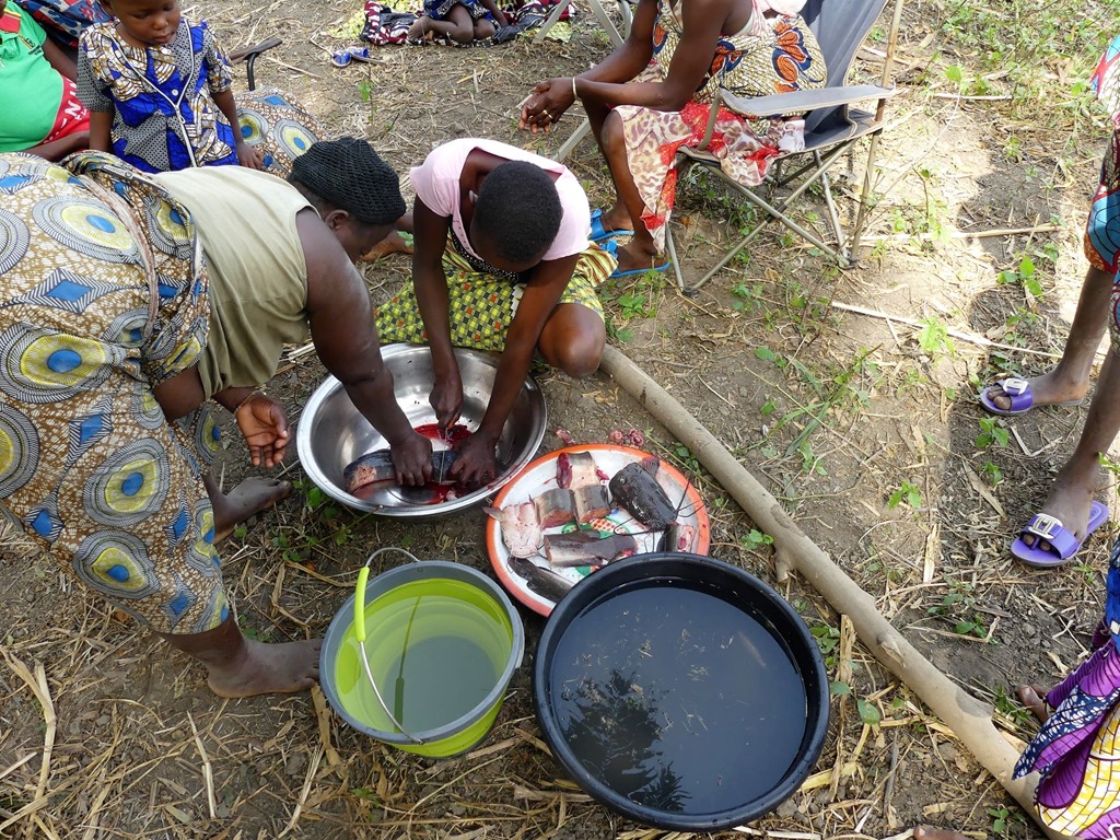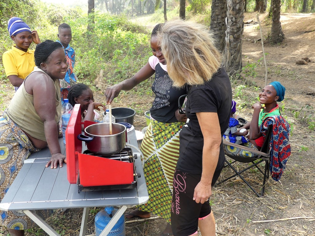 Quelques mots de français, le langage des signes et beaucoup de bonne volonté. On passe de bons moments ensemble, comme la préparation d’un repas partagé: nous achetons le poisson frétillant du fleuve et du riz, les femmes préparent la soupe de poisson et cuisent le riz à l’étouffé. Et même sans tamtam, c’est tout le hameau et plus qui viendra déjeuner.