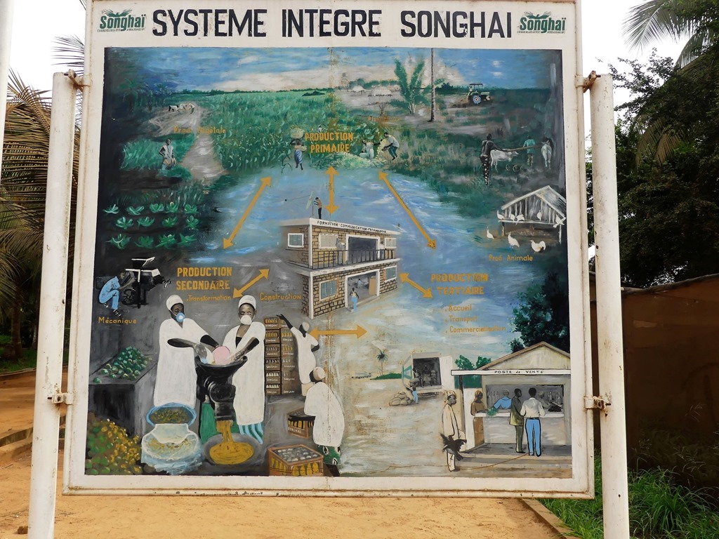 “Songhaï, l’Afrique relève la tête !” : C’est avec cette devise que le père Dominicain Godfrey a créé les centres SONGHAÏ à Porto Novo, Parakou et Savalou au Bénin mais aussi au Nigéria et d’autres pays d’Afrique de l’Ouest. Un véritable éco-village, culture maraichère, élevage, transformation agro-alimentaire, pisciculture en bassins et en étangs, traitement et recyclage des déchets d’un secteur à un autre et aussi des services : hôtellerie, restaurant, magasin, cyber café, traitement de documents. Un modèle qui intègre également la formation pour les jeunes qui veulent s’en donner la peine. Tout est basé sur le travail. Et cela marche !!!!
