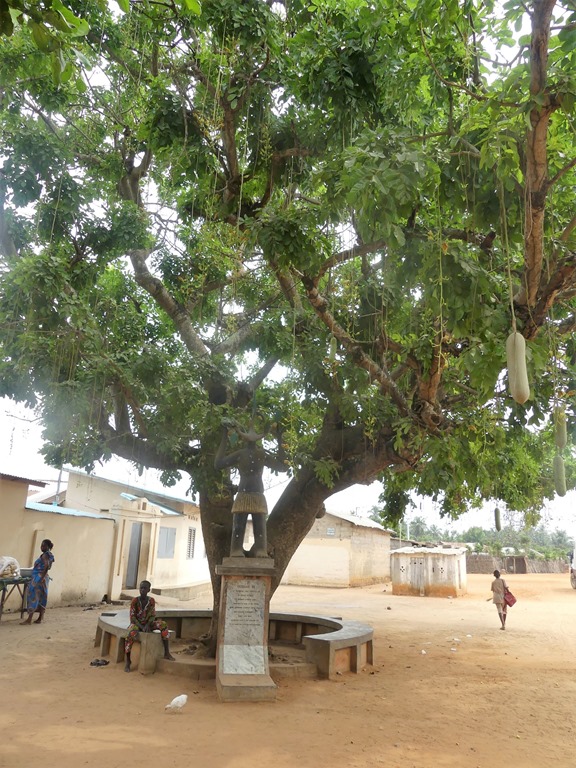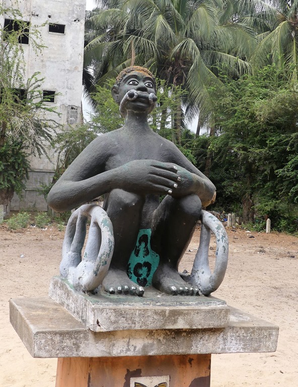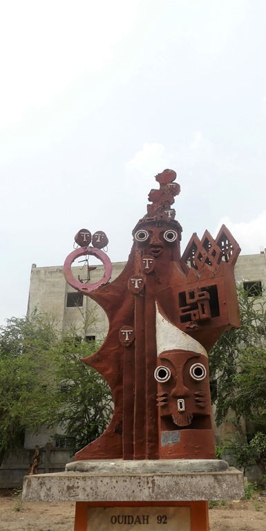 A Ouidah, au 18ème siècle, après avoir été vendus sur la place Chacha du marché aux enchères, les esclaves parcouraient enchainés les 4kms de la route des esclaves, faisaient 3 fois le tour de “l’arbre du retour” pour que leur âme revienne en ce lieu après leur mort et franchisaient “la porte de non retour” avant d’être embarqués dans les cales des navires à destination de l’Amérique du sud. Emouvant !!!
