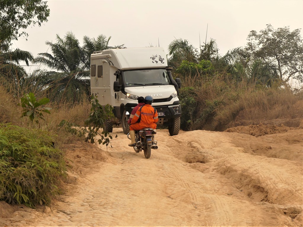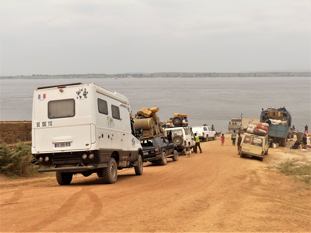 Au bout de la piste, le bac pour traverser le fleuve Congo est pris d’assaut par les locaux. Dans la matinée, il a été réquisitionné pour des raisons d’urgence médicale pour un dignitaire et cumule maintenant un grand retard. Beaucoup de monde, de l’attente, des congolais qui veulent tous passer en priorité. On se retrouve à observer cette agitation africaine. Patience est toujours le maitre mot de l’Afrique. On rencontre alors Norbert et Andersson, deux Congolais représentant de la mission protestante Église du Christ du Congo qui attendent également leur tour pour embarquer. Ils auront à cœur de nous parler avec passion de leur pays, de ses nombreuses richesses et aussi ses dysfonctionnements. Ils nous parlent également de tradition, d’accueil et pour finir des bonobos, ces grands singes, si proches de l’homme, uniquement présents en RDC. Ces quelques heures d’attente et de discussion nous donnent une autre vision de ce pays.